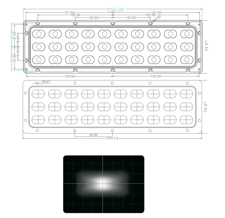 | Chùm tia:: | 65X120 độ | Kích thước ống kính:: | 250X74mm |